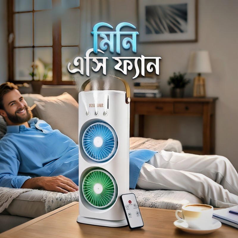 Dual Head Desktop Air Cooling Mist Humidifier Fan Tower & Pedestal Fans for Home With Night Light