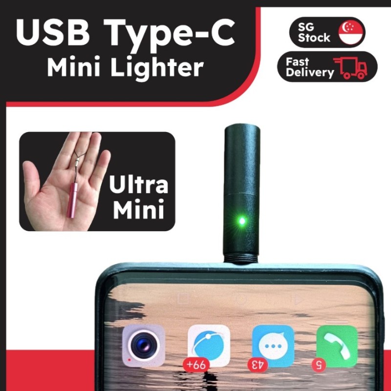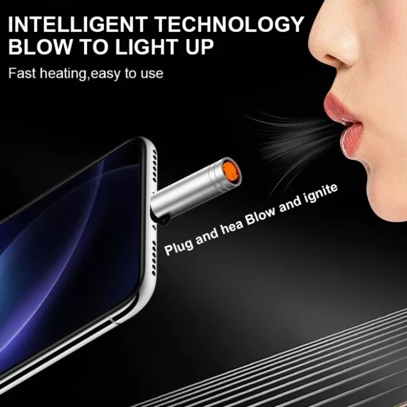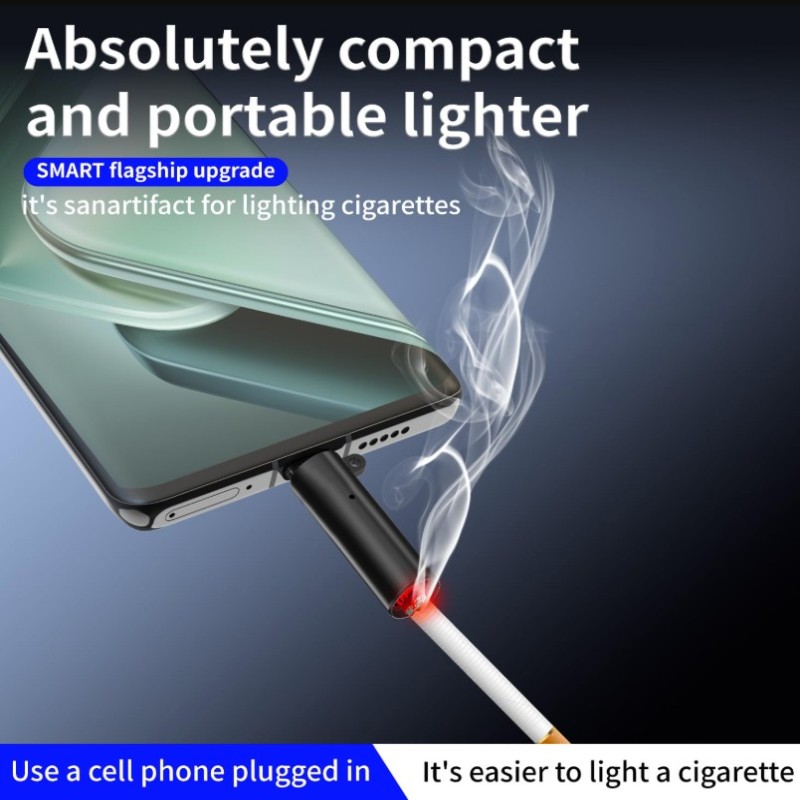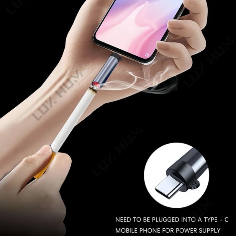Flameless Small Cigarette Lighter, USB Type-C Power, Flameless Windproof, Men's Father Gift Decoration (Mini Version)