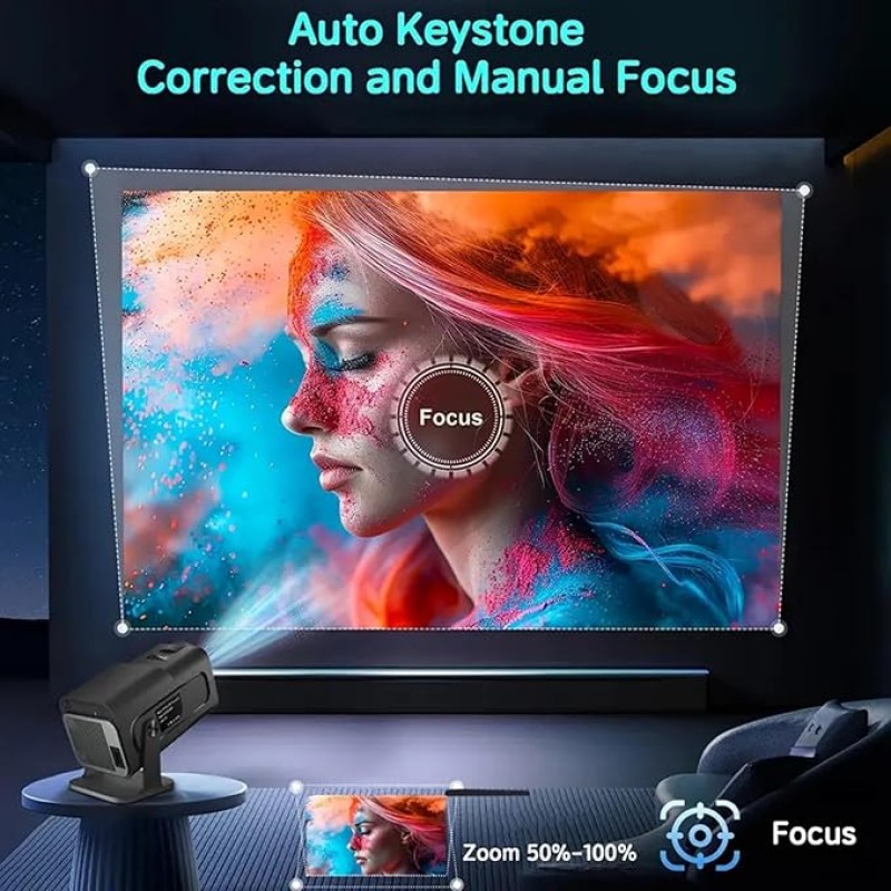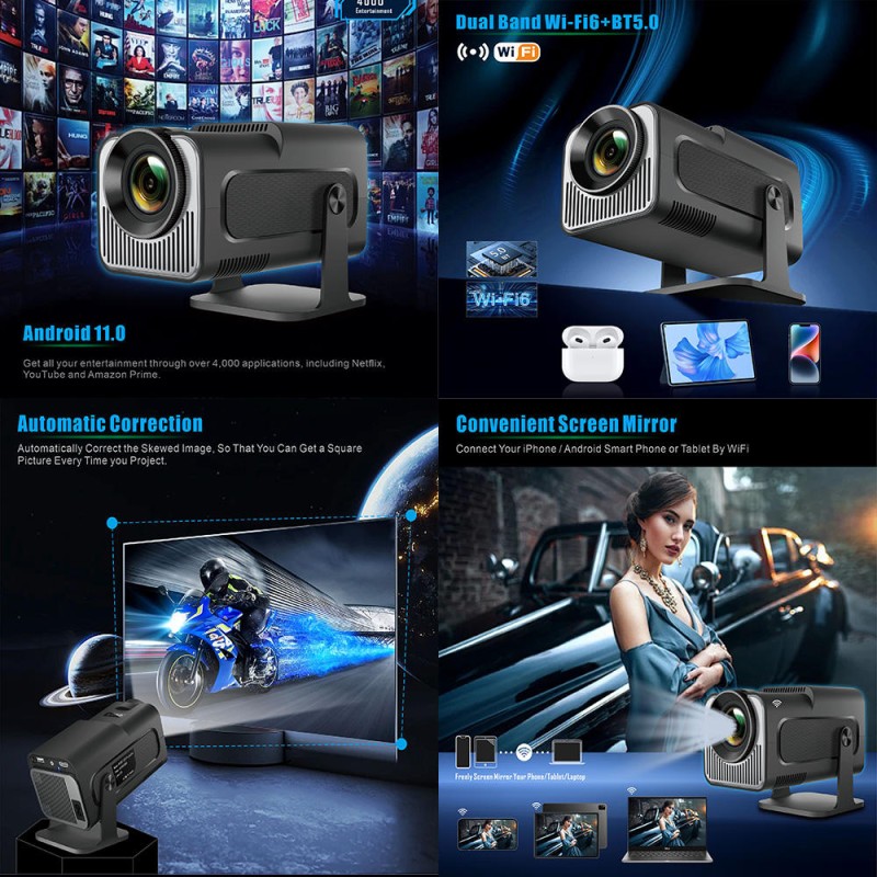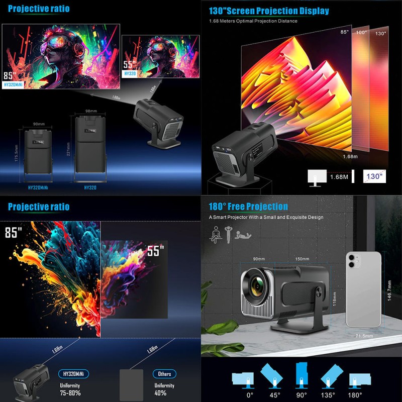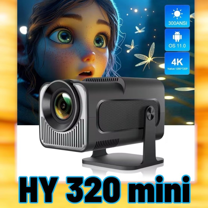 HY320mini Android Projector Android 12, 400 ANSI Lumens, 180° Rotatable, Auto Keystone Correction, 24"-190" Screen Video Projector
