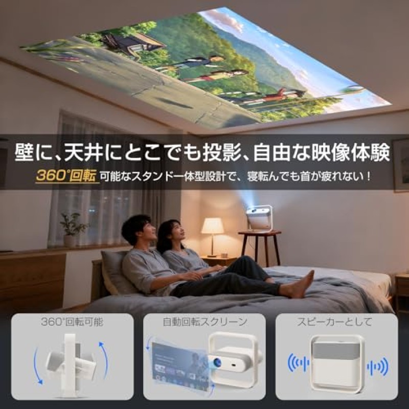 - Portable and lightweight with 180-degree rotation and 200-inch screen
