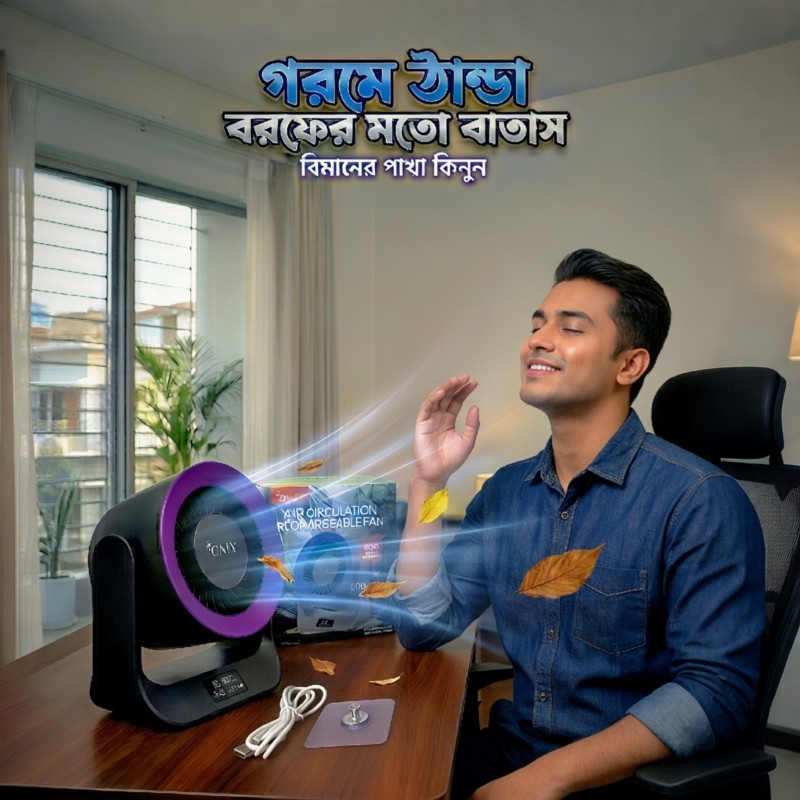গরমকে বলুন টাটা!  নিয়ে এলাম প্রিমিয়াম কোয়ালিটির BIG TURBO FAN Air Circulation Rechargeable Fan এর শক্তিশালী টার্বো বাতাস আপনাকে দেবে একদম বিমানের পাখার মতো অনুভূতি।