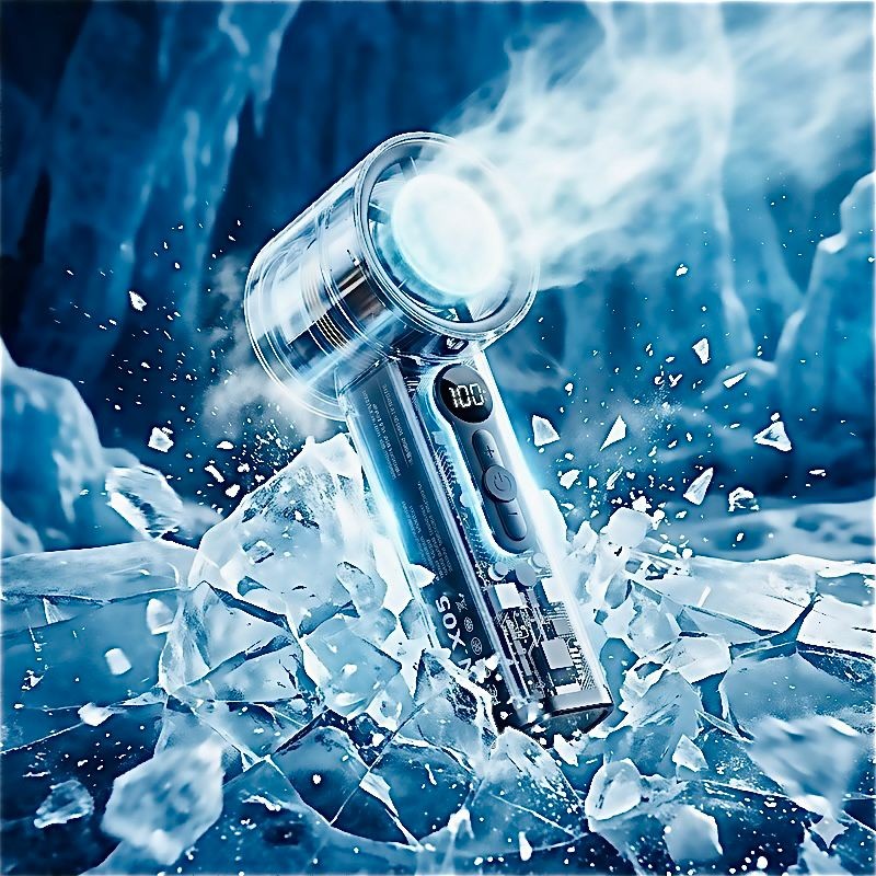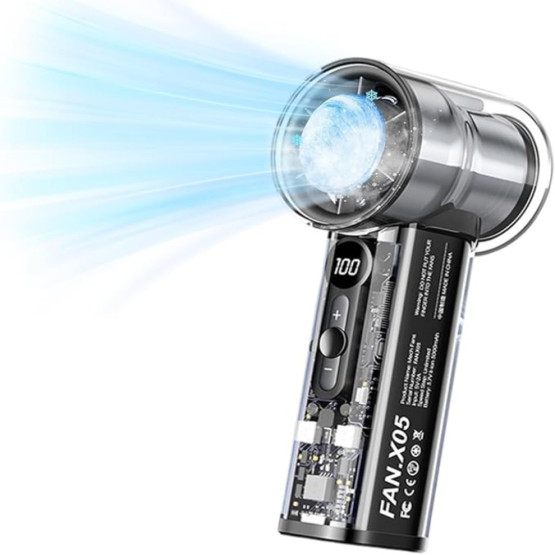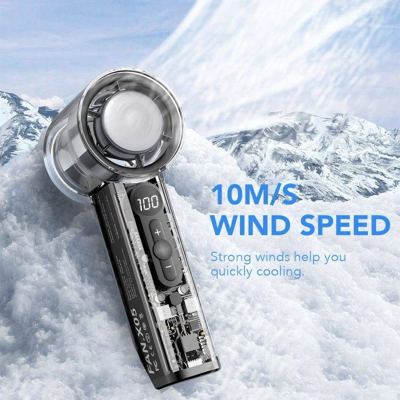 This item is an X05 handheld ICE Cooling portable fan designed for personal AC cooling.