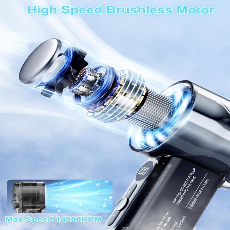 - Performance: Powered by a 3000mAh ORIGINAL Rechargeable battery, it utilizes a high-speed turbine construction to deliver strong airflow.